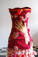 Well besides working frantically to finish and promote 'this comes from within' I am needing to shuffle around some dresses!!! First, some dresses are coming home from the ALL Gallery in Lowell and from the Bromfield Gallery, Boston. It is amazing how fast August went this year!!! It was a pleasure to be included in both of these shows and I am sorry that they are ending. But as some dresses come back others are going out ~ In Memory of.... was juried into War & Peace: Images of Conflict and Resolution in the 21st Century at