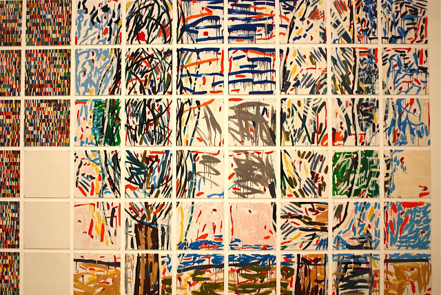 The scale of her work is compelling. I still remember standing in front of some of her towering canvases and literally feeling a physical reaction. I was also enamored with her twisted, morphed and sectional paintings. Note these 3 photos of Murray's work, you can see the progression that her canvases take, from square, flat paintings, to shaped canvases to skeleton-like puzzles of connecting and protruding brightly painted uniquely shaped canvas components (note the dates that these works were created).